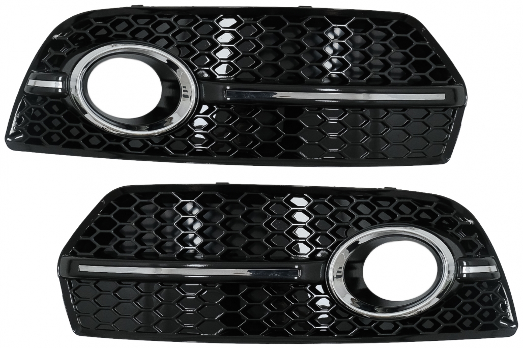 Fog Lamp Covers Side Grilles suitable for Audi Q5 SUV 8R (2008-2011) RS Design Piano Black Chrome