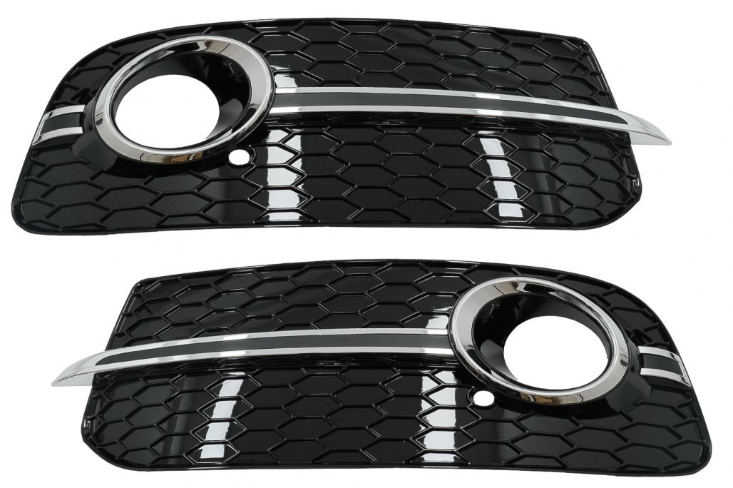 Fog Lamp Covers Side Grilles suitable for Audi Q5 SUV 8R Facelift (2012-2016) RS Design Black & Chrome