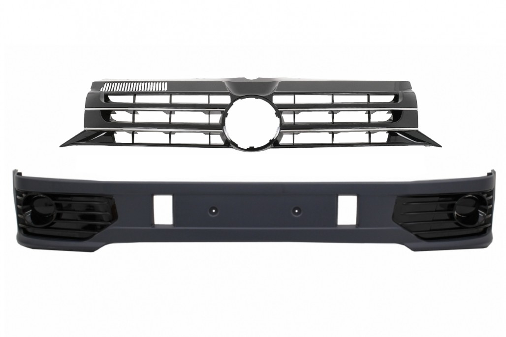 Front Bumper Add-on Spoiler suitable for VW Transporter Multivan Caravelle T5 T5.1 Facelift (2010-2015) with Badgeless Front Debadged Grille Sportline Design