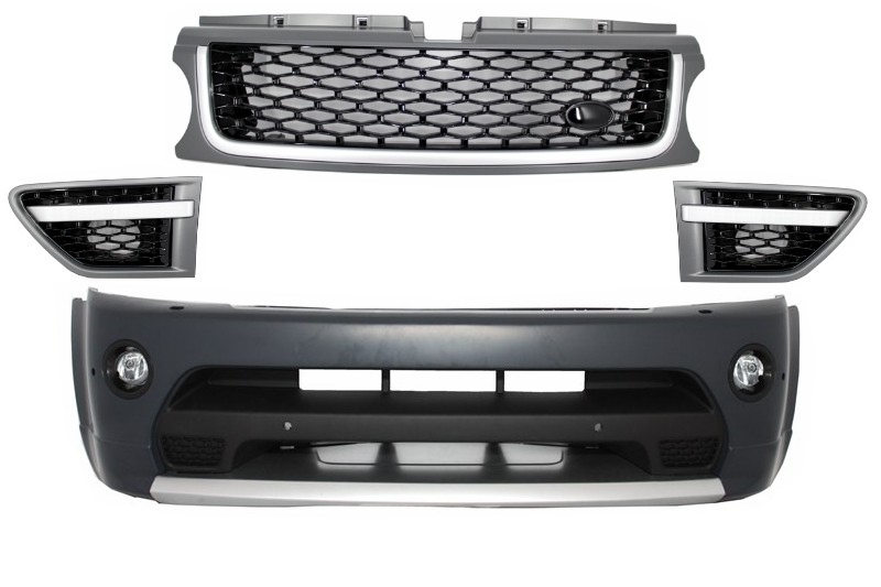 IntroThis Front Bumper and Front Grilles Assembly is meant to give your Range Rover Sport a surprising fresh and noble look.Suitable forLand Range Rover Sport L320 Facelift (2009-2013)Not suitable forLand Range Rover Sport L320 (2005-2009)DescriptionFront Bumper Autobiography Design equipped with front grille license plate support fog lamps cases and fog lamps.