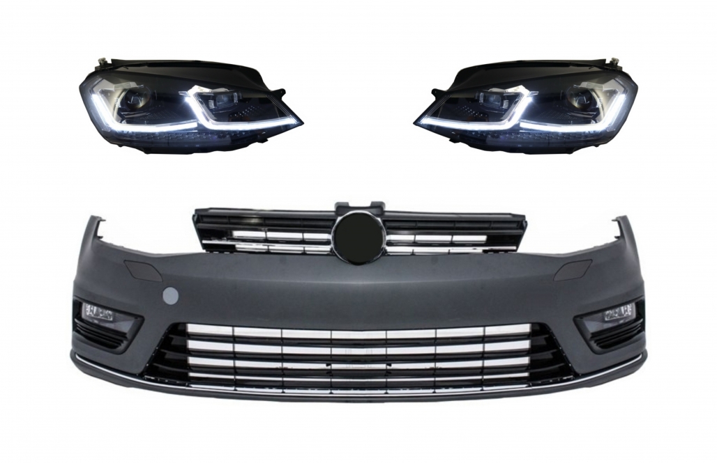 Front Bumper and LED Headlights with Sequential Dynamic Turning Lights suitable for VW Golf VII 7 (2013-2017) R-Line Look