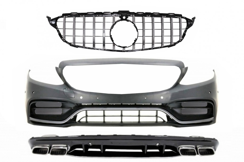 Front Bumper & Grille with Diffuser and Tips suitable for Mercedes C-Class W205 S205 AMG Sport Line (2014-2020) C63S Design