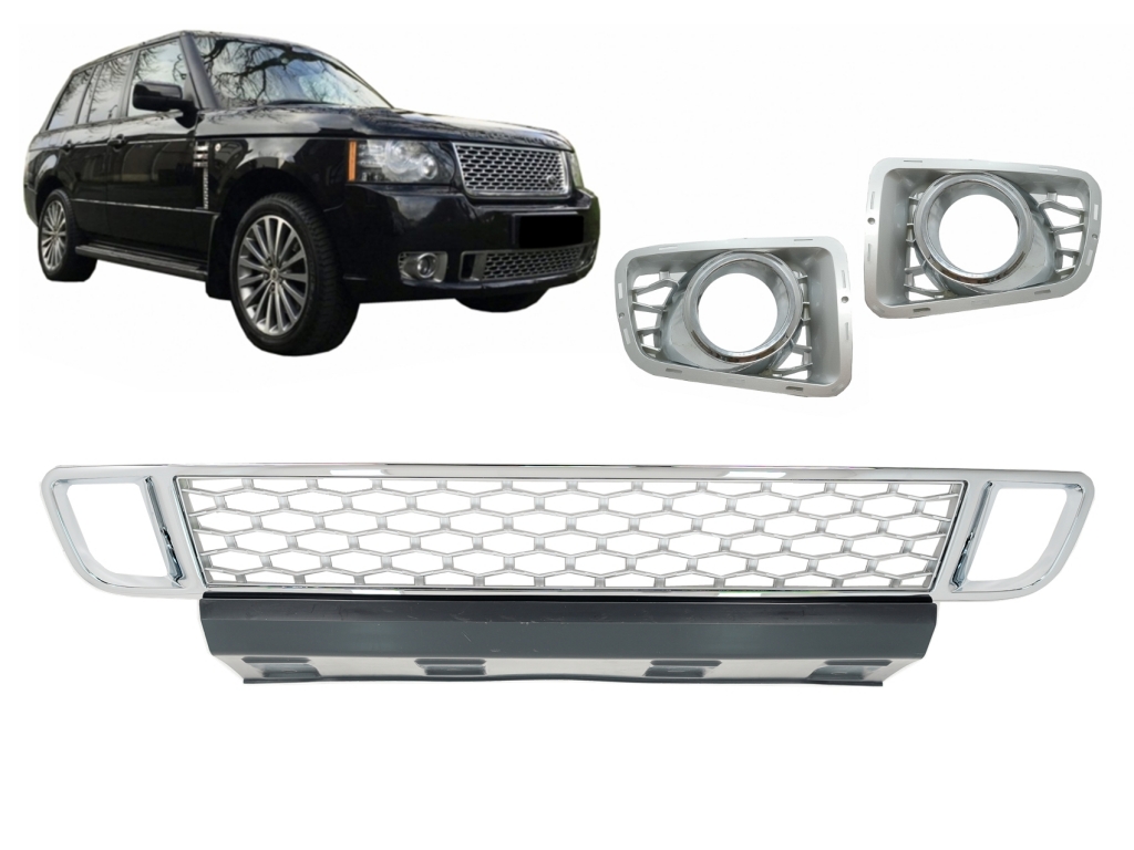 Front Bumper Lower Grille with Fog Lamp Covers suitable for Land Range Rover Vogue III L322 (2010-2012) Autobiography Design Chrome