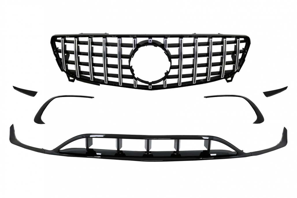 Front Bumper Splitters Fins Aero with Central Grille suitable for Mercedes A-Class W176 Facelift Sport Line (09.2015-2018) Piano Black