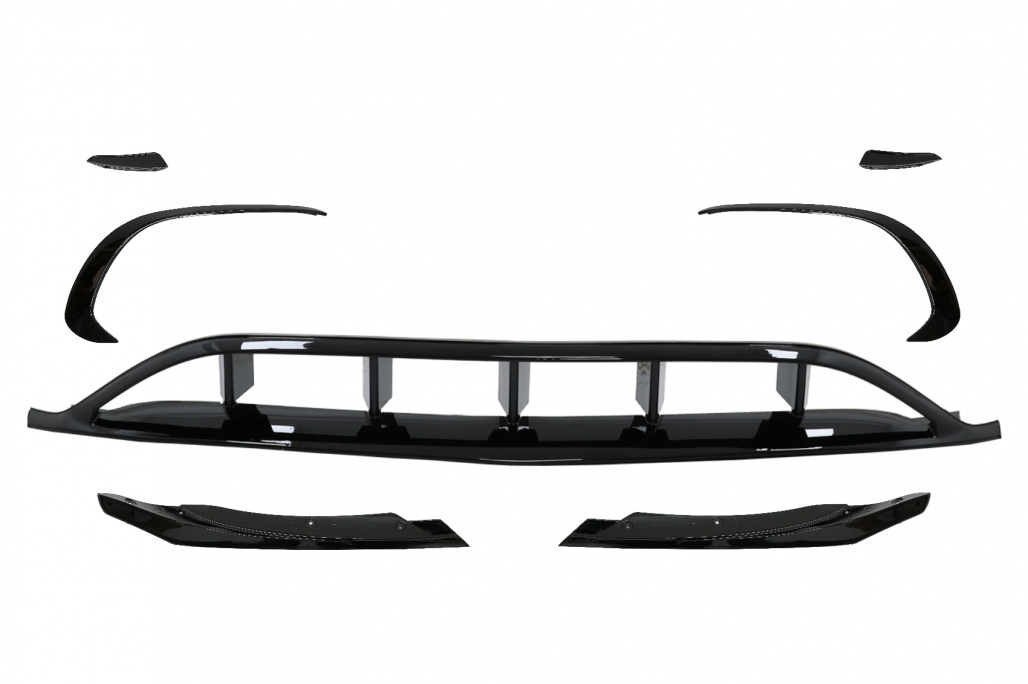 Front Bumper Splitters Fins Aero with Central Grille suitable for Mercedes A-Class W176 Facelift Sport Line (09.2015-2018) Piano Black