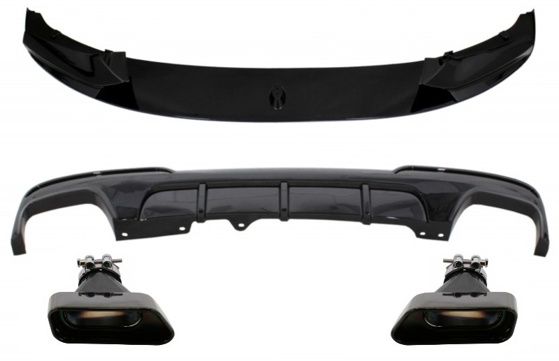 Front Bumper Spoiler Lip suitable for BMW 5 Series F10 F11 (2011-2017) with Double Outlet Air Diffuser and Muffler Tips M-Performance Piano Black
