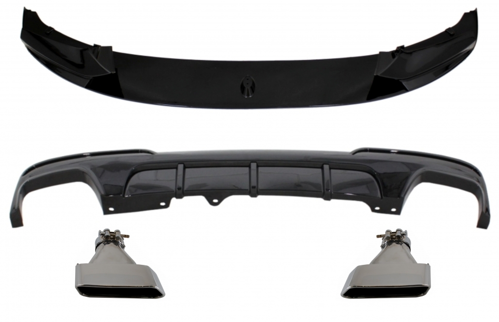 Front Bumper Spoiler Lip suitable for BMW 5 Series F10 F11 (2011-2017) with Double Outlet Air Diffuser and Muffler Tips M-Performance Piano Black