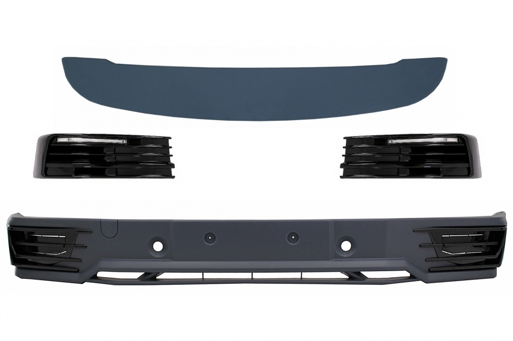 Front Bumper Spoiler with LED DRL Daytime Running Lights and Roof Spoiler suitable for VW Transporter T6 (2016-up) Sportline Design