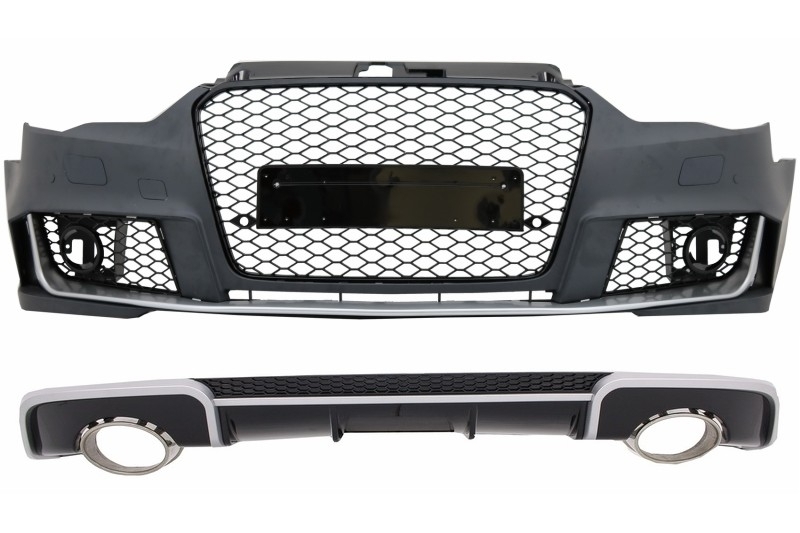 Front Bumper suitable for Audi A3 8V (2012-2015) with Rear Bumper Air Diffuser and Exhaust Tips Hatchback Sportback RS3 Design