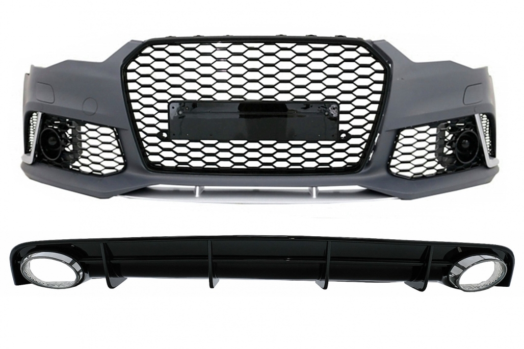 Front Bumper suitable for Audi A6 4G Facelift (2015-2018) with Rear Bumper Diffuser & Exhaust Tips RS6 Design only S-Line Bumper