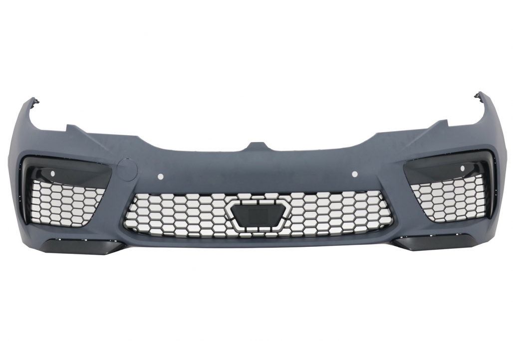 Front Bumper equipped with a lower central grille side grilles painted in piano black color with a tow hook cover and PDC holes – 6 sensors
