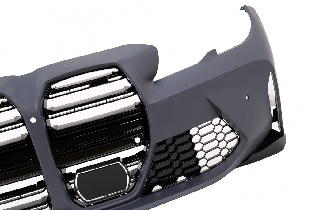 BMW 3 Series F30 (2011-2018)DescriptionFront Bumper equipped with a lower central grille side grilles painted in piano black color with a tow hook cover and PDC holes (4 sensors)
