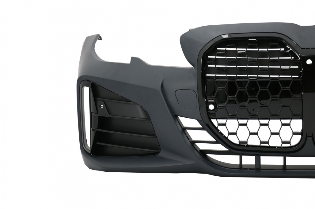 BMW G80/G81 M3DescriptionFront Bumper equipped with a lower central grille side grilles painted in piano black color with a tow hook cover and PDC holes – 6 sensors