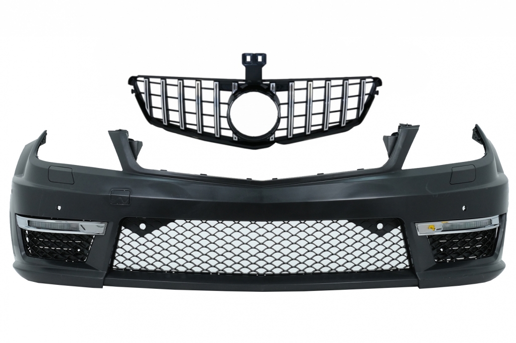 Front Bumper suitable for Mercedes C-Class W204 (2012-up) C63 Facelift Look with Front Grille GT-R Panamericana Chrom