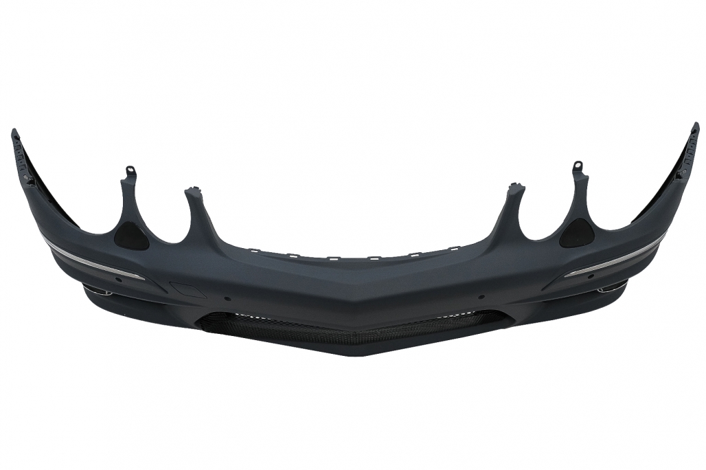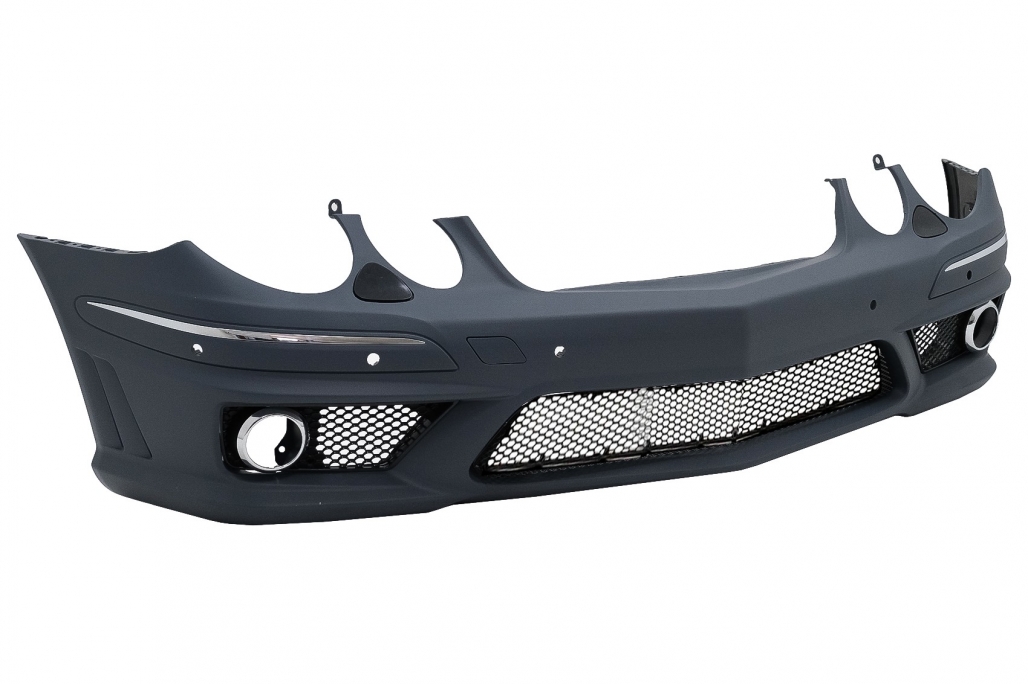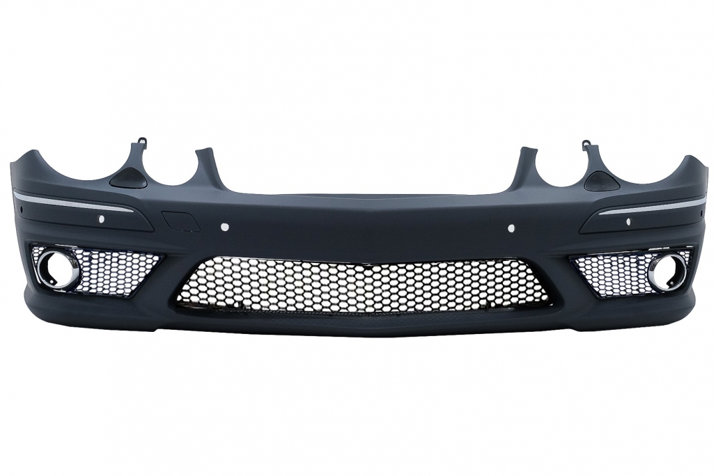 IntroThis front bumper is meant to transform your Mercedes into an sporty looking Design modelSuitable forMercedes W211 E-Class (2006-2009)Not suitable forGenuine AMG modelsDescriptionFront bumper equipped with PDC holes central-lower grille side pannels with chromed insertions headlights washer nozzles.Fitting and InstallationFitting instructions not included.
