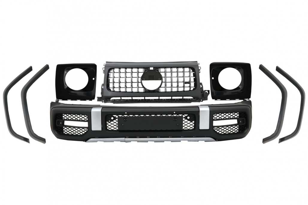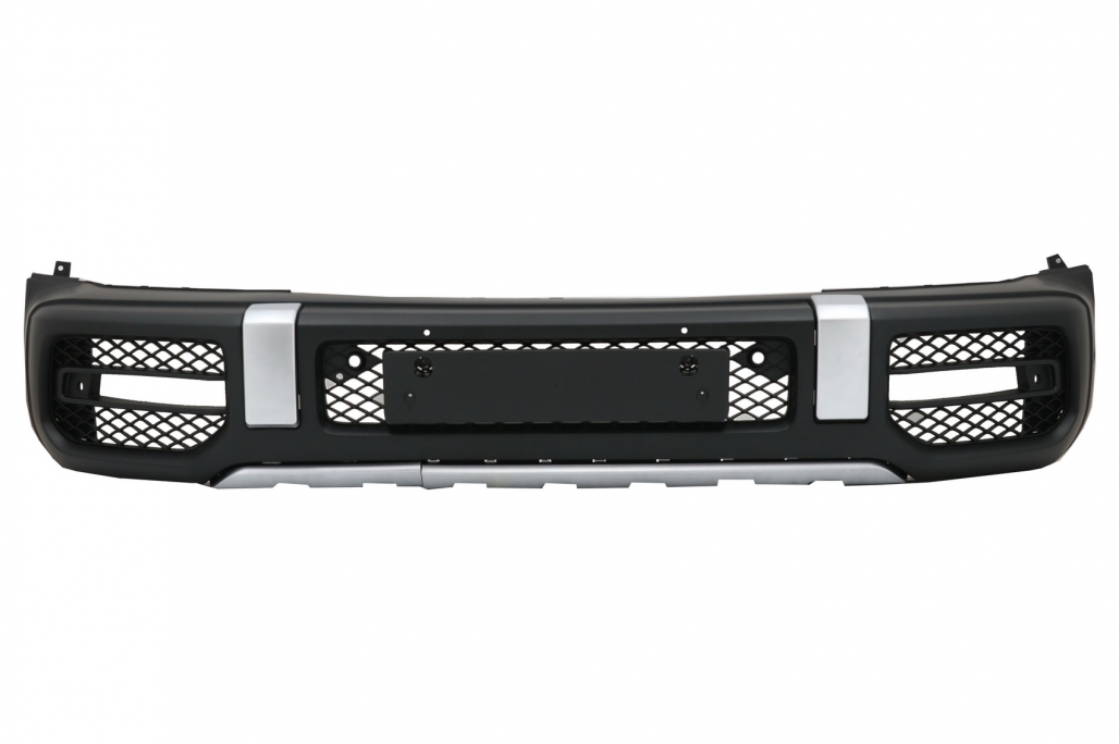 Mercedes G-Class W463 (1989-2007)DescriptionFront Bumper is equipped with front bumper steel reinforcement central grille side grilles aluminum ornaments intercooler grilles and license plate support