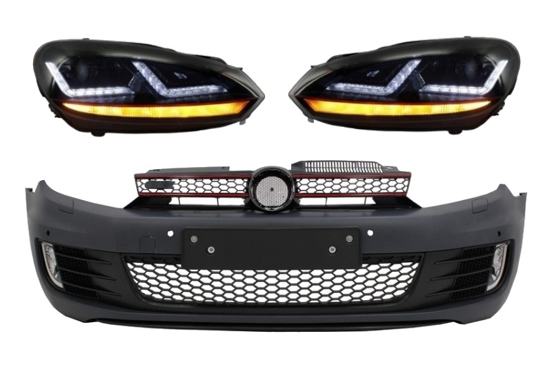 Front Bumper suitable for VW Golf 6 (2008-2013) Look with Osram LED Headlights Xenon Upgrade Red GTI Dynamic Sequential Turning Lights