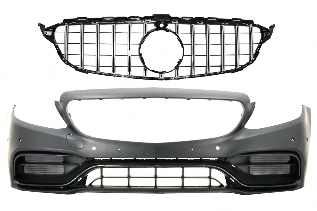Front Bumper with Chrome Grille suitable for Mercedes C-Class W205 S205 A205 C205 (2014-2018) C63 Design