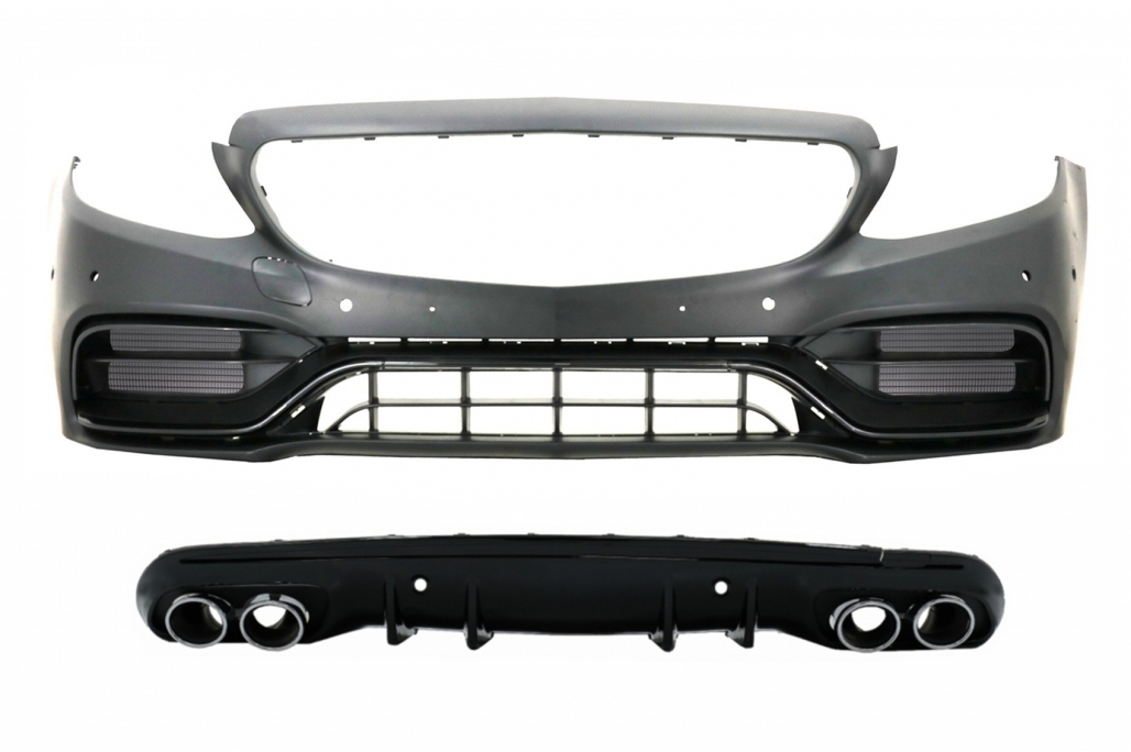 Front Bumper with Diffuser and Exhaust Muffler Tips suitable for Mercedes C-Class W205 Sedan S205 Estate AMG Sport Line (2014-2020) C63 Design