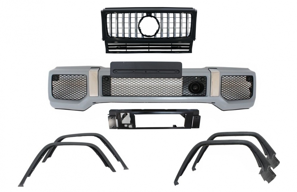 Front Bumper with Fender Flares Wheel Arches and Front Grille Black Chrome suitable for Mercedes G-Class W463 (1989-2018) G65 Design