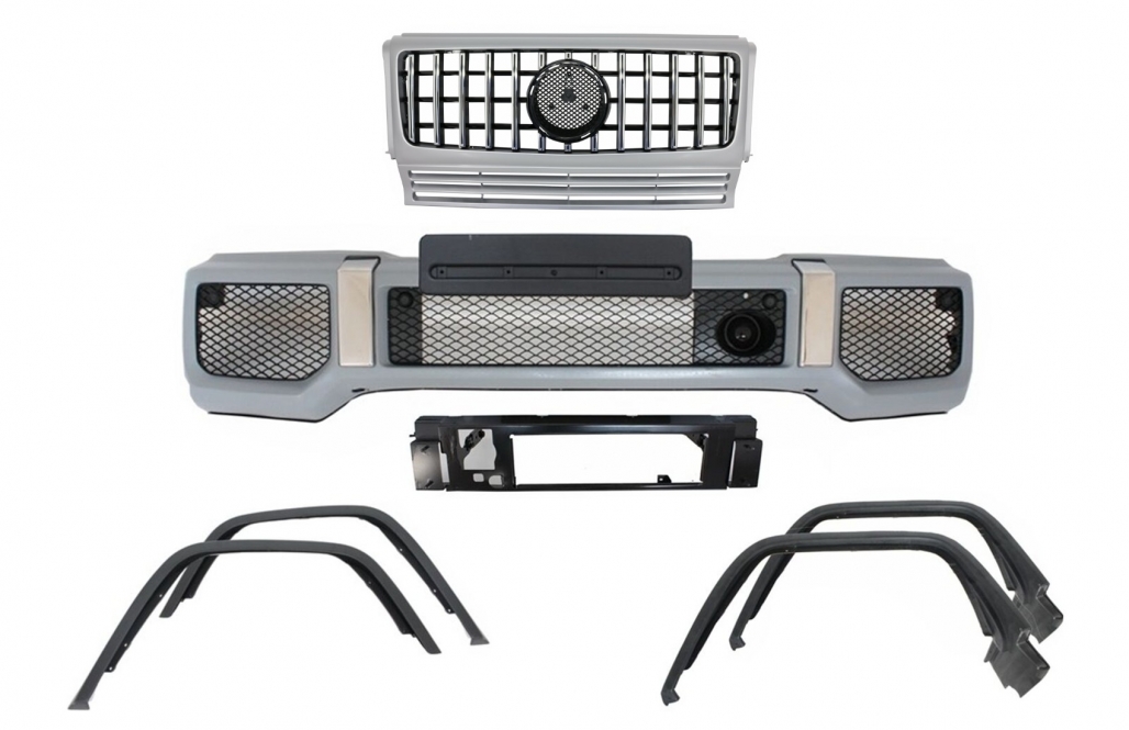 Front Bumper with Fender Flares Wheel Arches and Front Grille Silver suitable for Mercedes G-Class W463 (1989-2018) G65 Design