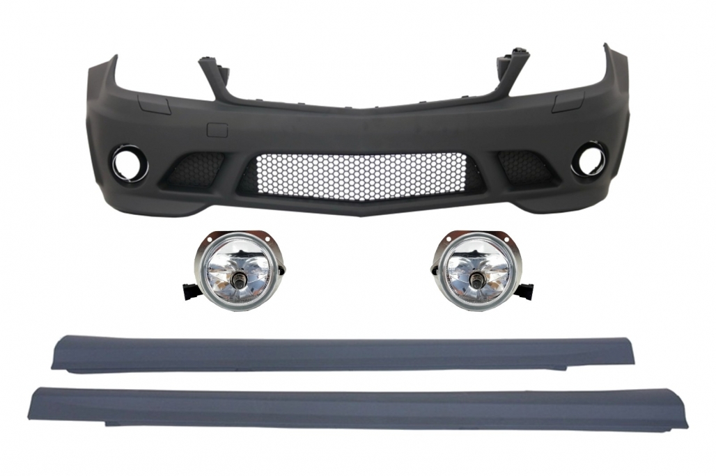 Front Bumper with Fog Lights and Side Skirts suitable for Mercedes C-Class W204 (2007-2012) C63 Design