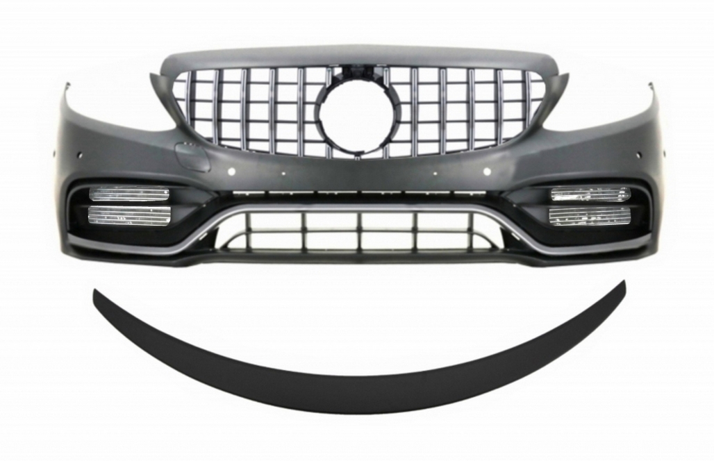 Front Bumper with Grille and Trunk Boot Spoiler Matte Black suitable for Mercedes C-Class C205 (2014-2018) C63 GT-R Design