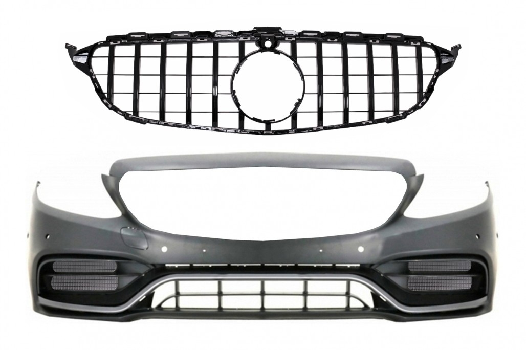 Front Bumper with Grille Black suitable for Mercedes C-Class W205 S205 C205 A205 (2014-2018) C63 GT-R Design