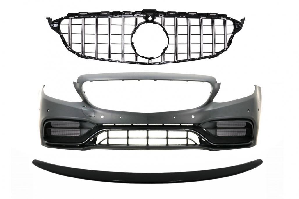 Front Bumper with Grille Chrome and Trunk Boot Spoiler Piano Black suitable for Mercedes C-Class C205 (2014-2018) C63 Design