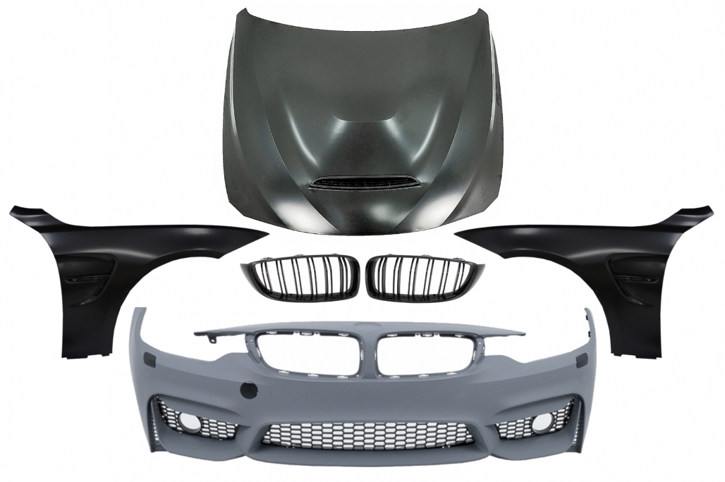 Front Bumper with Grilles and Front Fenders & Hood Bonnet suitable for BMW 4 Series F32 Coupe F33 Convertible F36 Gran Coupe (2013-2017) M4 Design Black