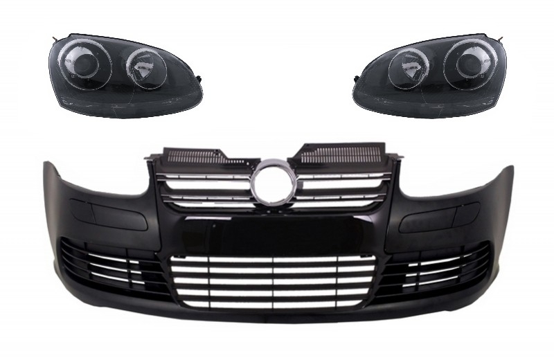 Front Bumper with Headlights suitable for VW Golf V 5 (2003-2007) Jetta (2005-2010) GTI R32 Look Black Edition