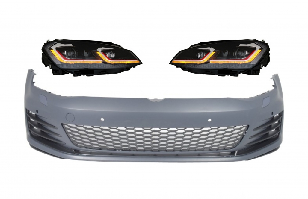 Front Bumper with LED Headlights Sequential Dynamic Turning Lights Red suitable for VW Golf VII 7 5G (2013-2017) Facelift G7.5 GTI Look