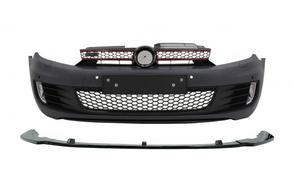 Front Bumper with Lip Extension Spoiler Piano Black suitable for VW Golf VI 6 (2008-2013) GTI Look