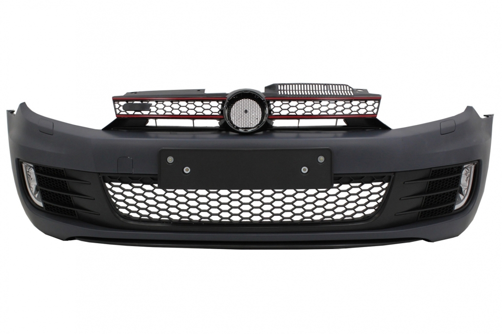 Front Bumper with Lip Extension Spoiler Piano Black suitable for VW Golf VI Golf 6 (2008-2013) GTI Look