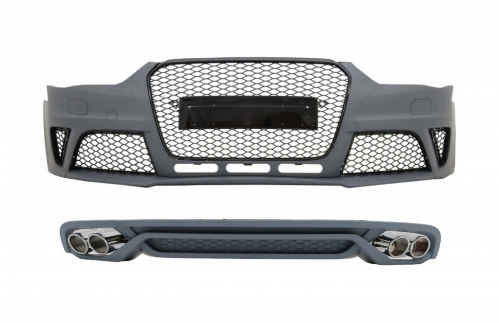 Front Bumper with Rear Diffuser and Exhaust Muffler Tips suitable for Audi A4 B8 Sedan Facelift (2012-2015) RS4 Design