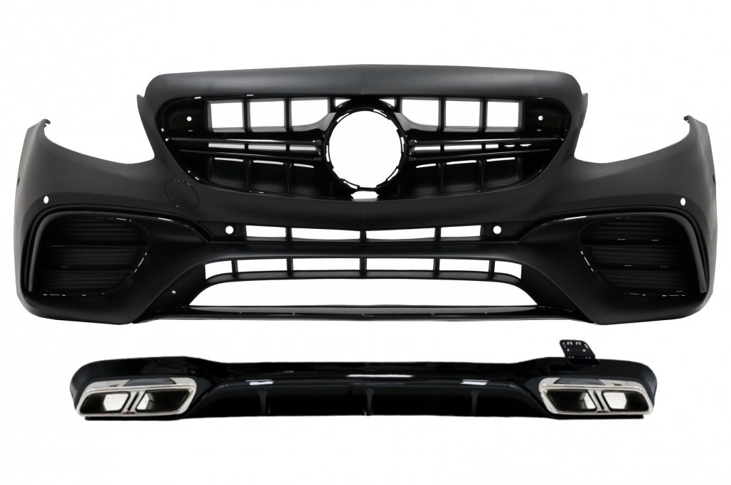 Front Bumper with Rear Diffuser and Exhaust Muffler Tips suitable for Mercedes E-Class W213 (2016-up) E63 Design Black Edition