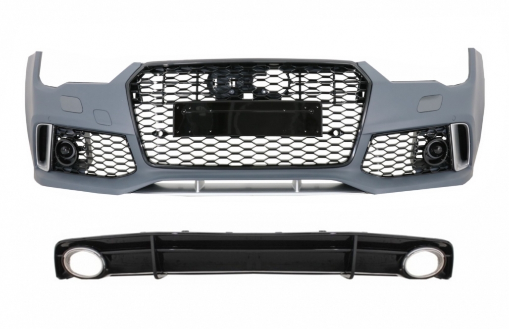 Front Bumper with Rear Diffuser Black and Exhaust Tips suitable for Audi A7 4G Facelift (2015-2018) RS7 Design Only S-Line