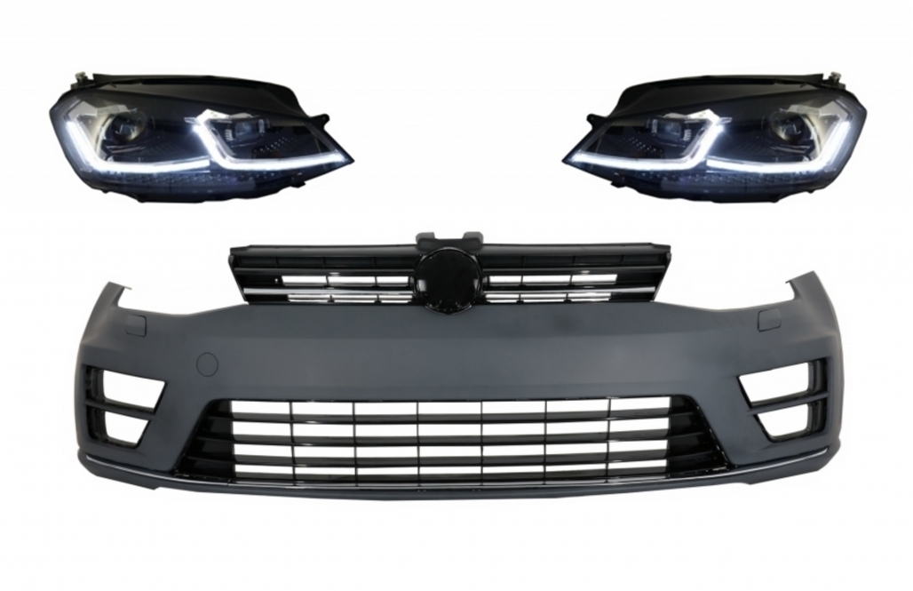 Front Bumper with RHD LED Headlights Sequential Dynamic Turning Lights suitable for VW Golf VII 7 (2013-2017) R-Line Look