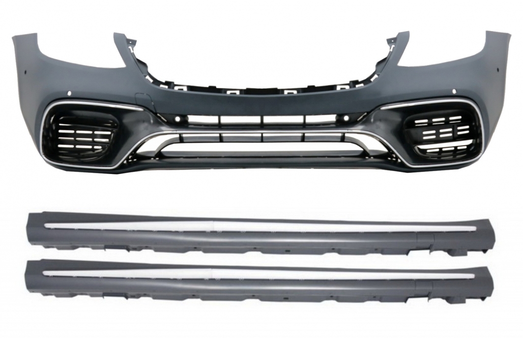 Front Bumper with Side Skirts suitable for Mercedes S-Class W222 Facelift Long Version (2017-up) S63 Design