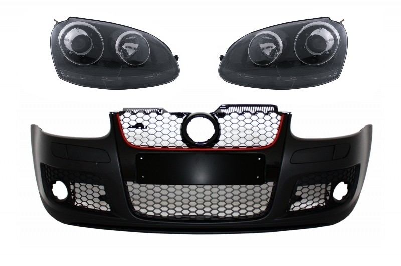 Front Bumper with Xenon Look Headlights Black suitable for VW Golf 5 V Mk5 (2003-2007) Jetta (2005-2010) GTI Design