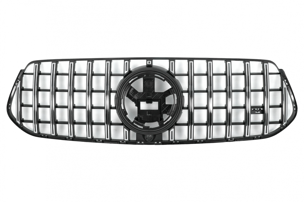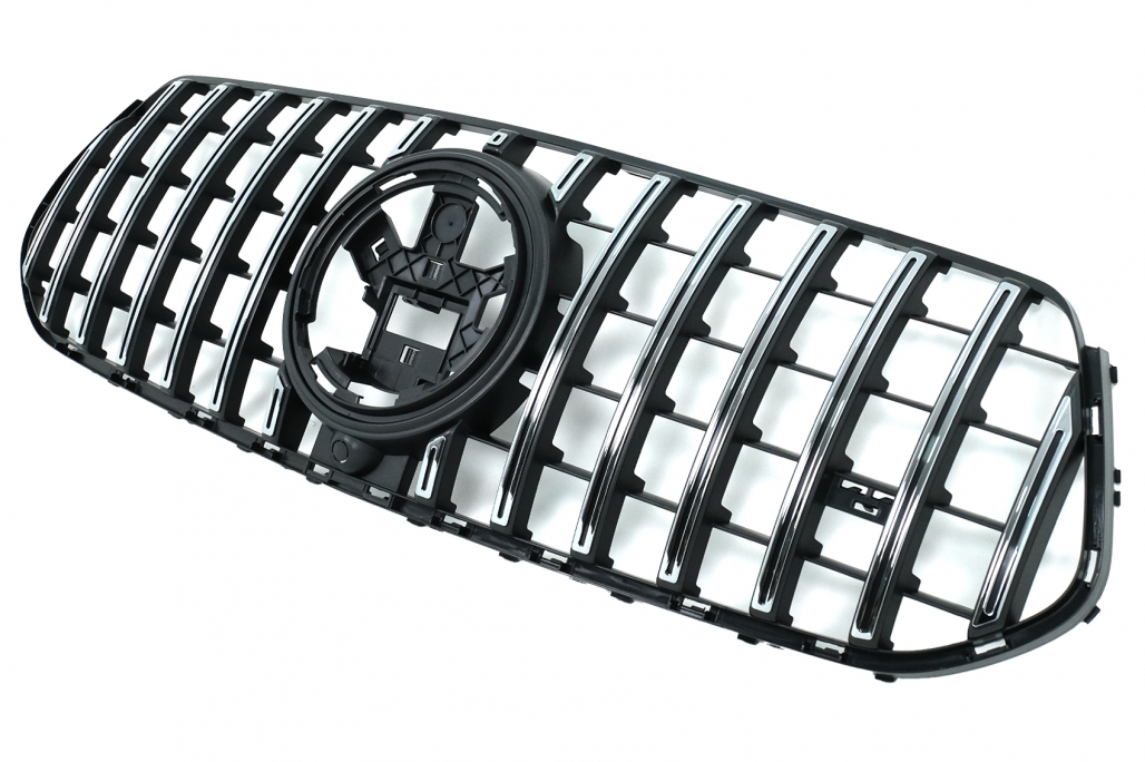 Front Central Grille suitable for Mercedes GLE SUV W167 V167 GLE Coupe C167 Sport Package (2019-06.2023) GTR Panamericana Design Glossy Black and Chrome