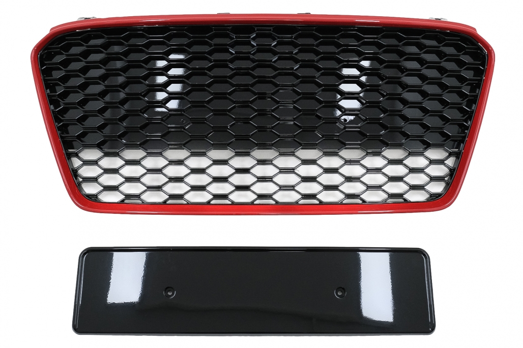 Front Grille suitable for Audi R8 42 1st Generation Facelift (2013-2015) RS Design Glossy Black Red