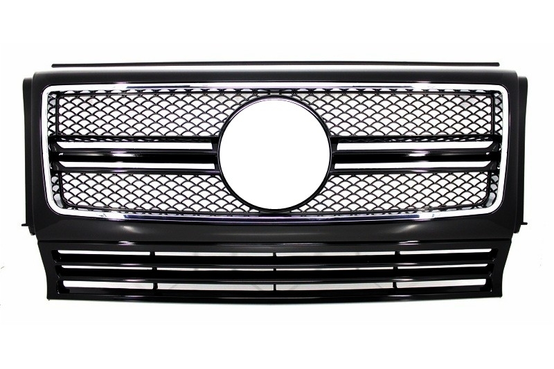 Front Grille Suitable for Mercedes G-Class W463 (1990-2012) G65 Design Piano Black Chrome Frame