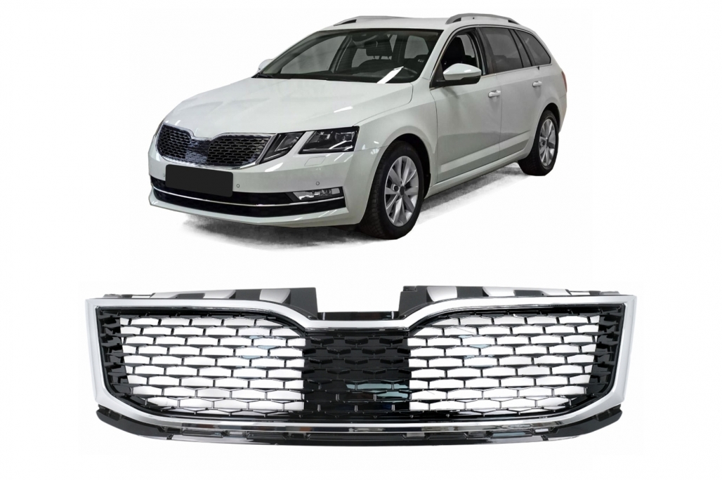 Front Grille suitable for Skoda Octavia III 5E Facelift Sedan Wagon (2017-2020) Black/ Chrome