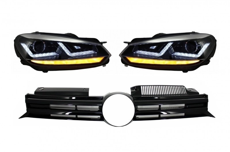 Front Grille suitable for VW Golf VI (2008-2012) with Osram Xenon Headlights Chrome LED Dynamic Sequential Turning Lights R20 Design