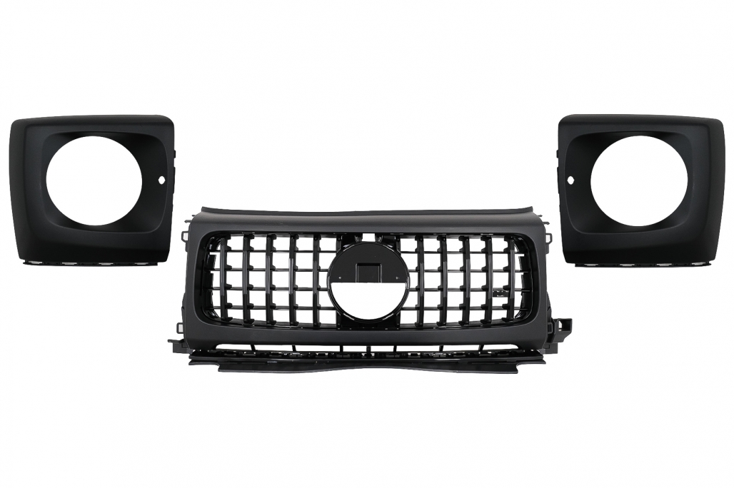 Front Grille with Headlights Covers suitable for Mercedes G-Class W464 W463A & G63 AMG (06.2018-Up) GT-R Panamericana Design Piano Black
