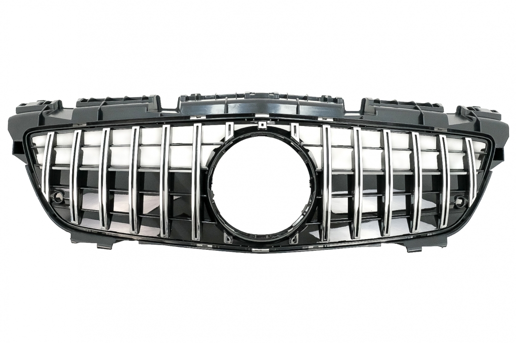 IntroThis front grille is meant to give your car a surprisingly fresh wild and aggressive look. This front grille can also make your car an eye-catcher on the street.Suitable forMercedes SLK-Class R172 (2011-2015)Not suitable forMercedes SLC-Class R172 Facelift (2016-2019)DescriptionCentral Grille with Lower Grille Mesh GT-R Panamericana Design