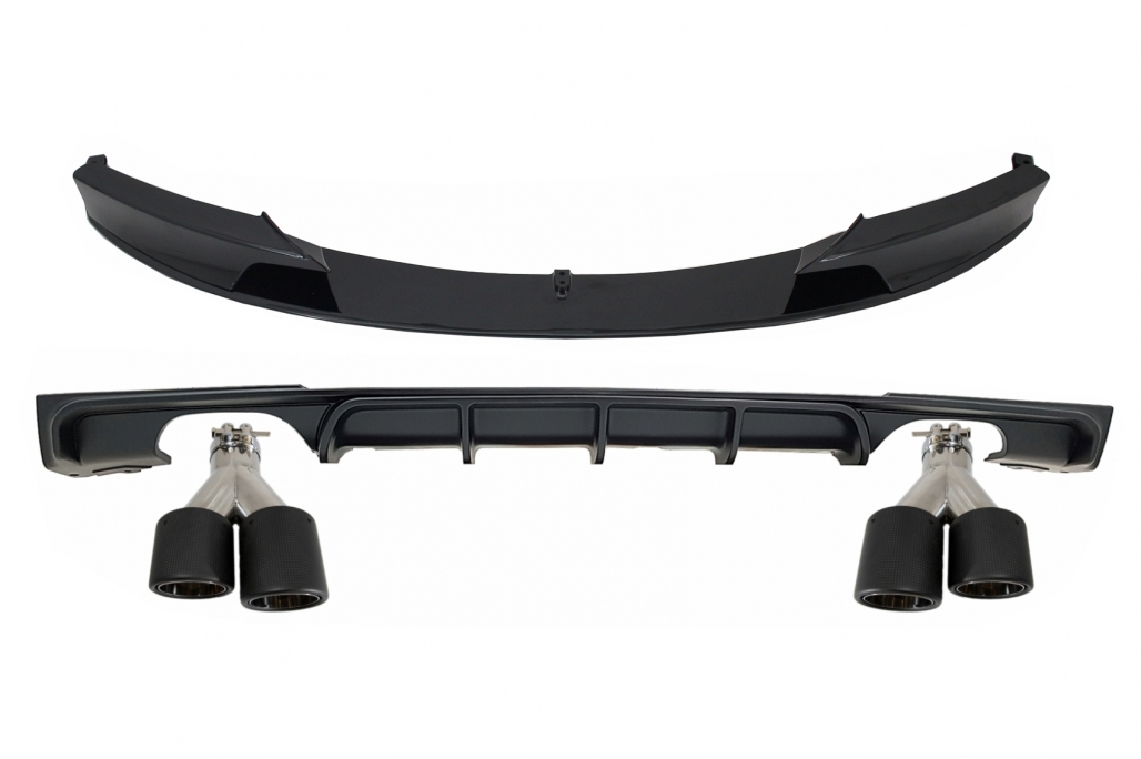 Front Spoiler LIp with Valance Diffuser Double Outlet and Exhaust Muffler Tips suitable for BMW 3 Series F30 F31 (2011-up) M Design