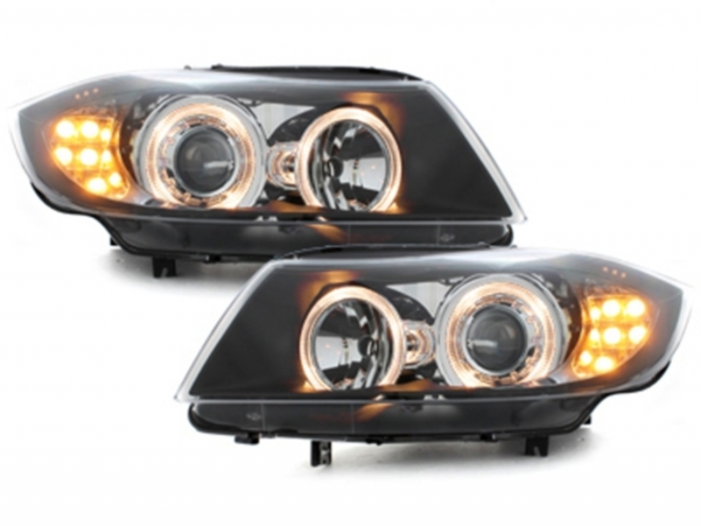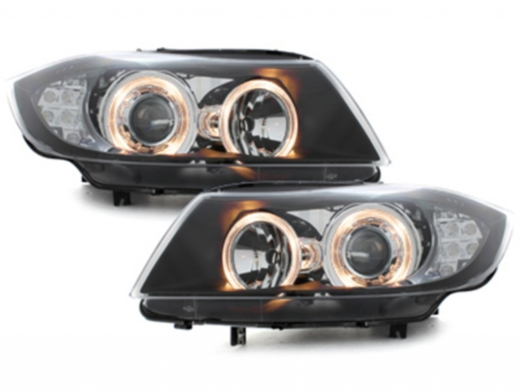 Headlights Angel Eyes LED suitable for BMW 3 Series E90 Sedan E91 Touring (03.2005-08.2008) 2 Halo Rims Black