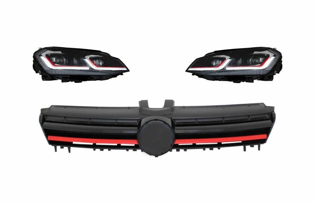 Headlights LED Sequential Dynamic Turn Light with Grille suitable for VW Golf 7 VII (2013-2017) R Look Red